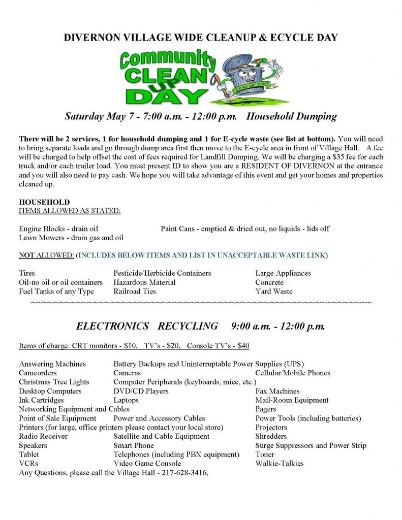 We will have maps showing the location of each participant. If you would like to have your address on the map, please contact the Village Hall no later than Thursday April 28 by the end of the day (4:30). The location maps will be available to pick up at garage sale locations throughout town. If you would like more information, please call the Village Hall - 628-3416.